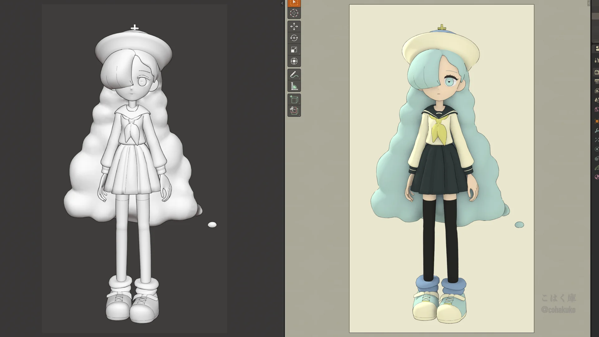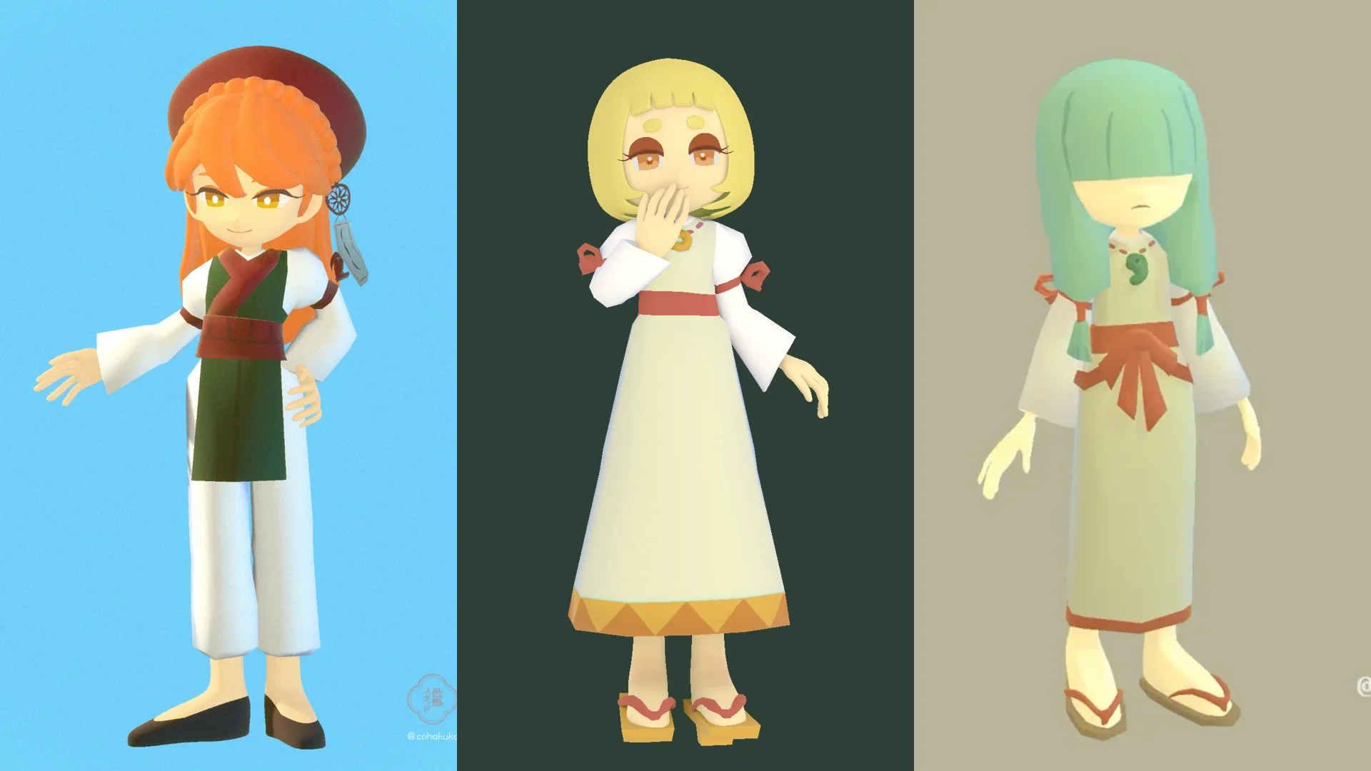 この3人はローポリめで頭身を低く作ったモデルなので、いずれ順番が回ってきたら今作ってるモデルのかんじバージョンもつくれたらいいな〜とは思っています。